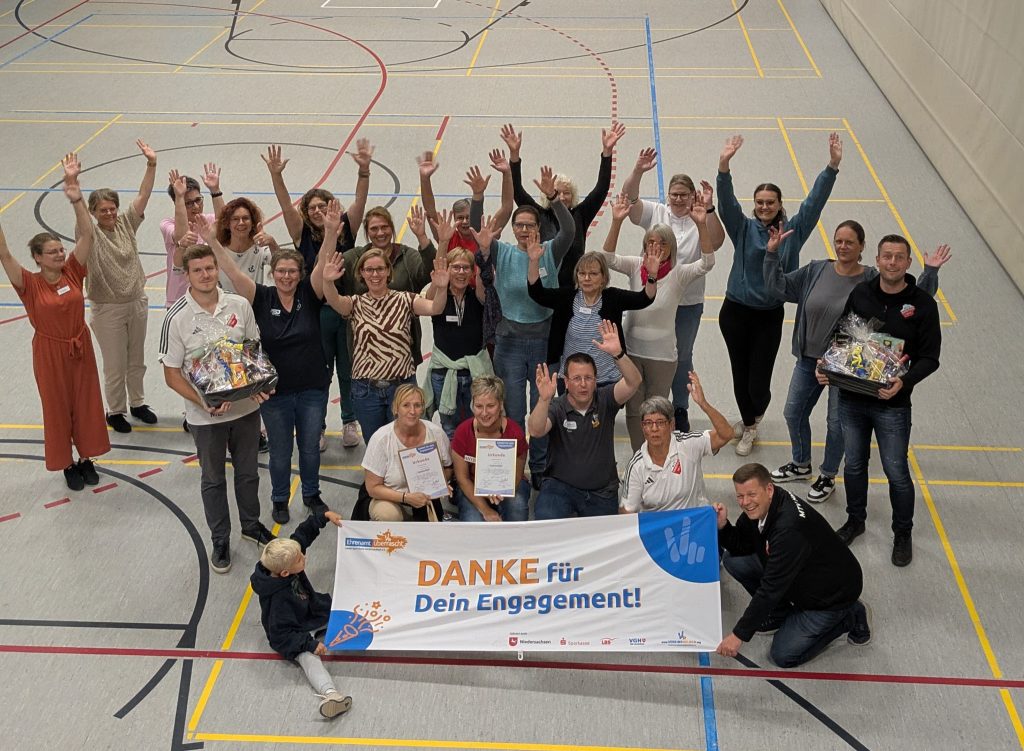 Während sich Antje, Christina und ihre Mitglieder sich auf einen gewohnten Montagabend beim Line Dance freuten, hatten sich der Kreissportbund Harburg in Person von Anita Ohlhorst und Sebastian Lührs sowie der Vorstand vom MTV auf dem Parkplatz getroffen, um die Übungseinheit mit der Aktion „Ehrenamt überrascht“ zu crashen. Durch die erschrockenen Gesichter von Antje und Christina wussten wir, dass das Überraschungsmoment auf unserer Seite war, als wir mit einem lauten ÜBERRASCHUNG in die Halle kamen. Sebastian und Alexander haben sich gleichermaßen außerordentlich bei ihnen bedankt. „Ohne Ehrenamt geht es nicht“ waren die wichtigsten Worte an dem Abend. Unter dem Applaus der Tänzerinnen nahmen beide vom KSB eine Geschenktüte und eine Urkunde sowie vom MTV ein Präsentkorbkorb entgegen.